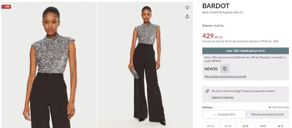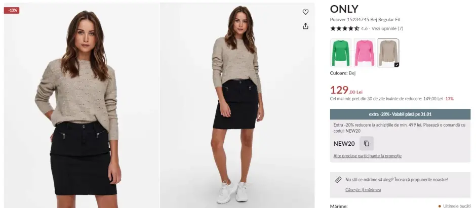 Profită acum de coduri și cupoane de reducere la magazinul nostru partener Modivo pentru a-ți îmbogăți garderoba cu noi colecții în culorile care vor fi la modă anul acesta. Folosește codul de reducere 20NEW pentru o extra reducere de -20% în coș, la achizițiile de minimum 459 lei. Codul este valabil până pe 31.01.2025. Aici poți vedea alte coduri și cupoane de reducere valabile în aplicația CashClub.