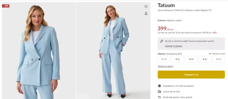 Note de stil: Cel mai bun „curățitor de paletă”, această nuanță revigorantă de albastru oferă un contrast puternic față de tonurile întunecate care au dominat în ultimul an. Abundența sa pe podiumuri îmi spune că designerii transmit un mesaj clar: 2025 este anul în care să lăsăm bucuria să pătrundă. Și ce modalitate stilată de a face asta!