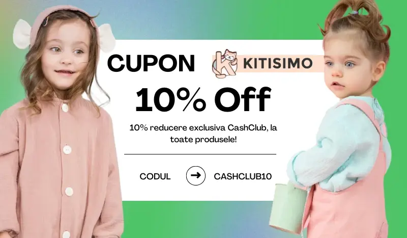 Ca să îți fie și mai ușor să faci alegeri inspirate pentru tine și familia ta, CashClub și Kitisimo.ro îți oferă acum 10% reducere la toate produsele de pe site. Folosește codul de reducere CASHCLUB10 la finalizarea comenzii și bucură-te de haine care spun povești despre grijă, naturalețe și iubire autentică.