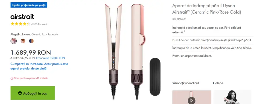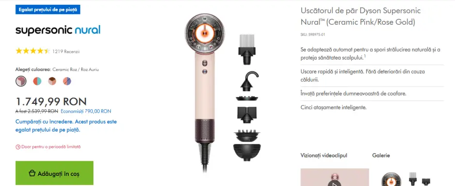 Ce modele găsești pe site-ul Dyson